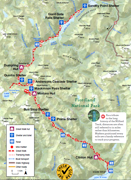 Pour se rendre au départ de la randonnée il est nécessaire de faire une réservation auprès d’un prestataire de la ville de Te Anau, en effet l’accès au départ Glade Wharf s’atteint après 1h30-2h de bateau sur le lac Te Anau. Néanmoins il est possible d’accéder au sentier par le col de Dore Pass, mais attention cette randonnée pour passer le col est difficile et ne doit pas absolument pas se faire en basse saison, la neige et la glace du col rendent le trajet trop dangereux. Cependant, que vous soyez passés par le lac ou par Dore Pass, à l’arrivée de la randonnée à Sandfly point, il vous faudra prendre un bateau (20min) pour rejoindre Milford Sound, et ensuite un trajet de 1h en voiture pour rejoindre encore Te Anau. Plusieurs options s’offrent donc à vous :